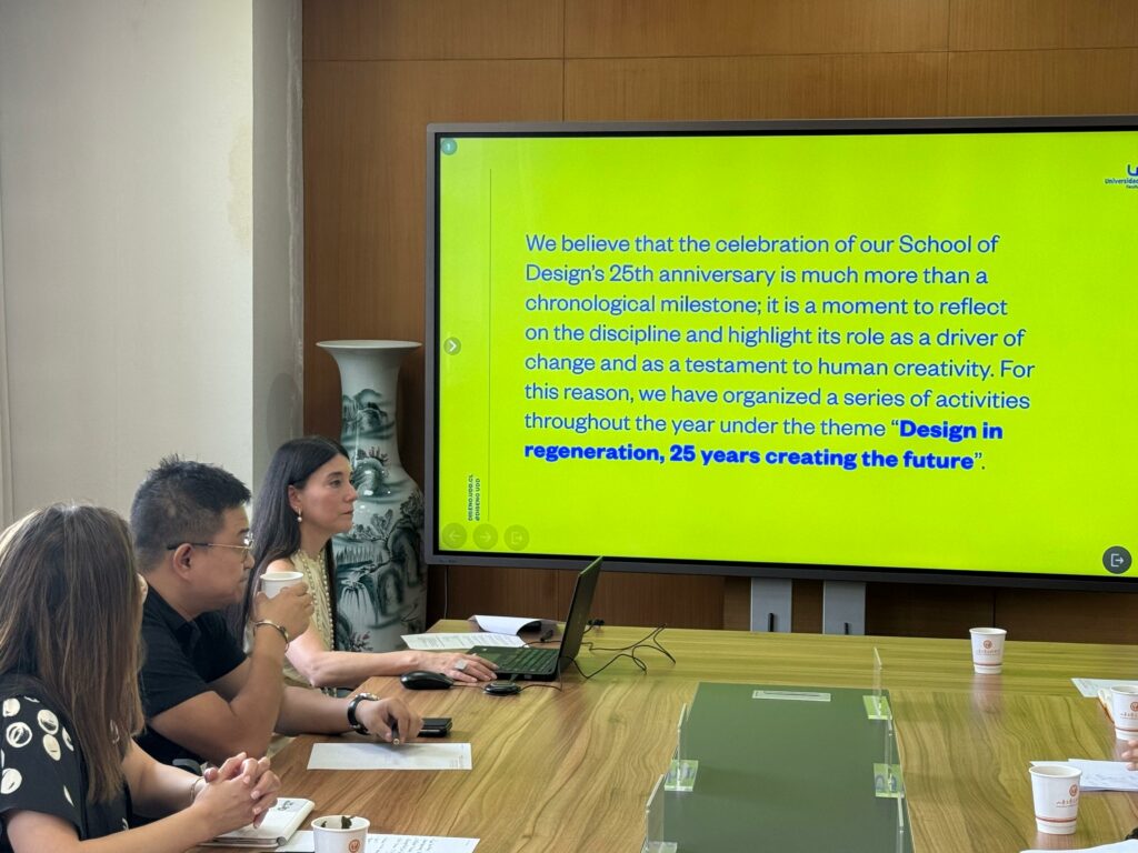 Por su parte, Alejandra Amenábar presentó los logros y trayectoria de la Facultad de Diseño, mencionando que «en el marco de la celebración de los 25 años de nuestra Facultad, esta alianza con Shandong University of Art & Design representa un paso fundamental en nuestro proceso de internacionalización hacia nuevas fronteras. Nos une una visión compartida: la estrecha vinculación con la empresa y el compromiso con la transferencia de conocimiento e innovación desde el diseño. Con SUAD compartimos no solo la excelencia académica, sino también la convicción de que la cooperación entre universidades y sectores productivos es clave para formar a las nuevas generaciones y para proyectar soluciones en conjunto que aporten a los desafíos locales y globales desde Latinoamérica y Asia.»