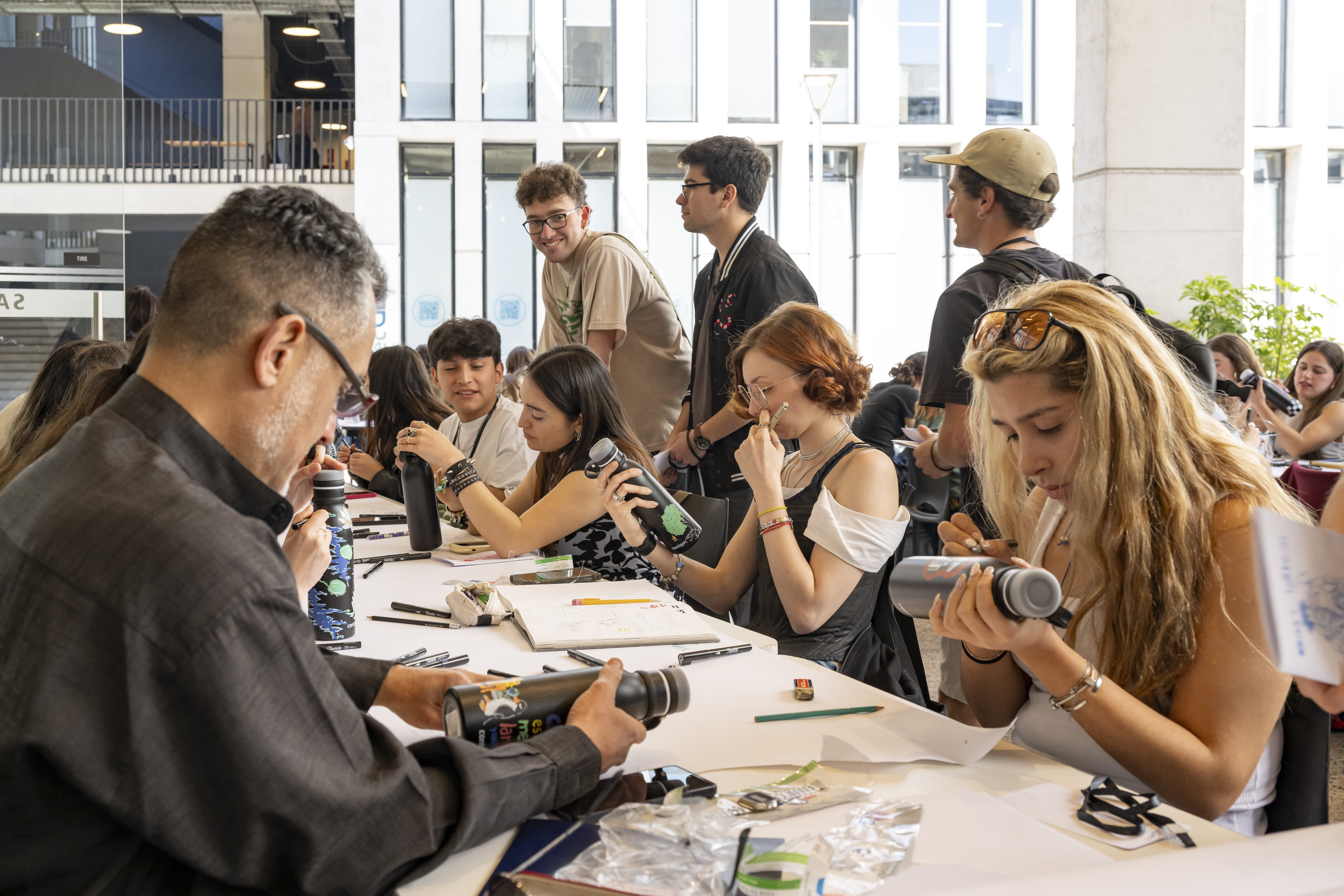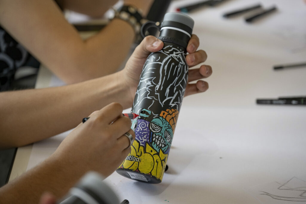 8.Workshop Ilustrando en Santiago de Chile auspiciado por la marca Sharpie y botellas Contigo. Los estudiantes fueron desafiados a crear ilustraciones en botellas bajo este concepto.